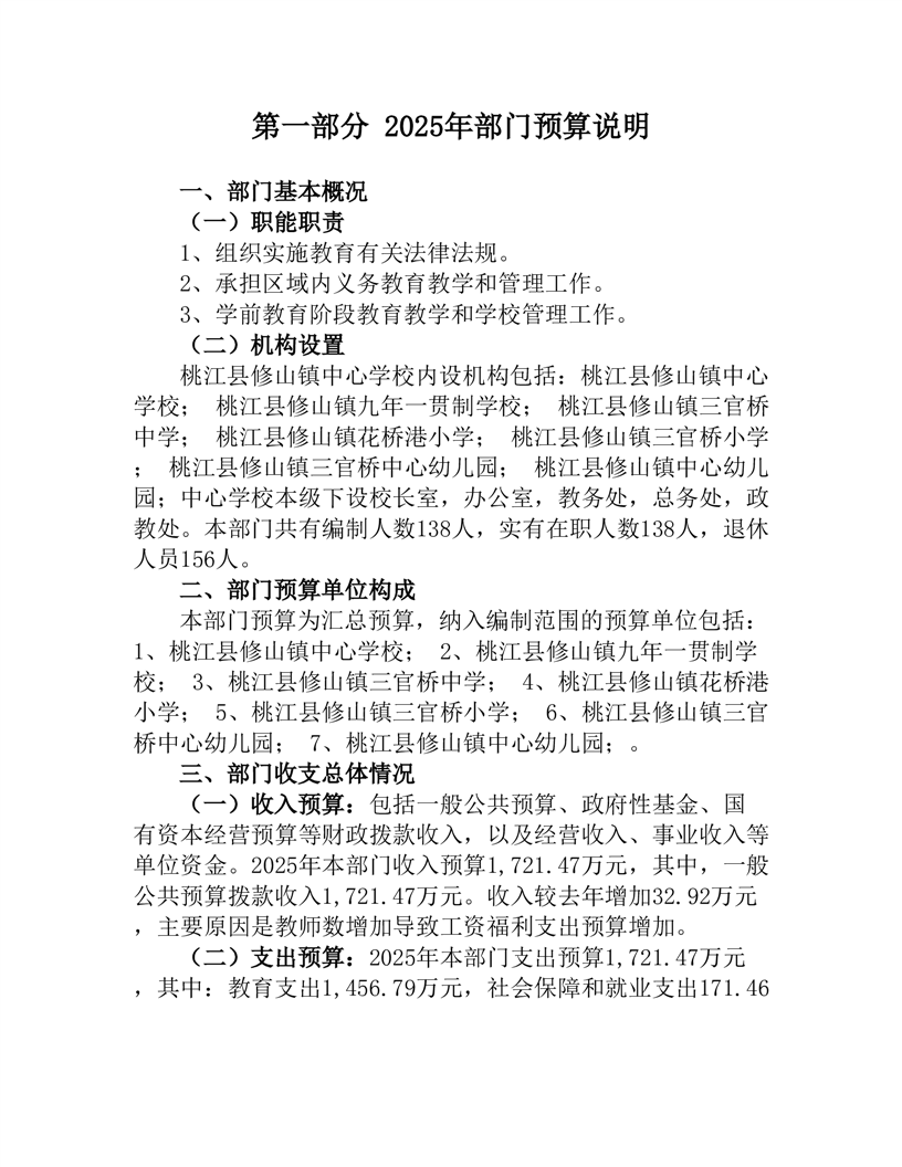 2025年度桃江县修山镇中心学校部门预算公开
