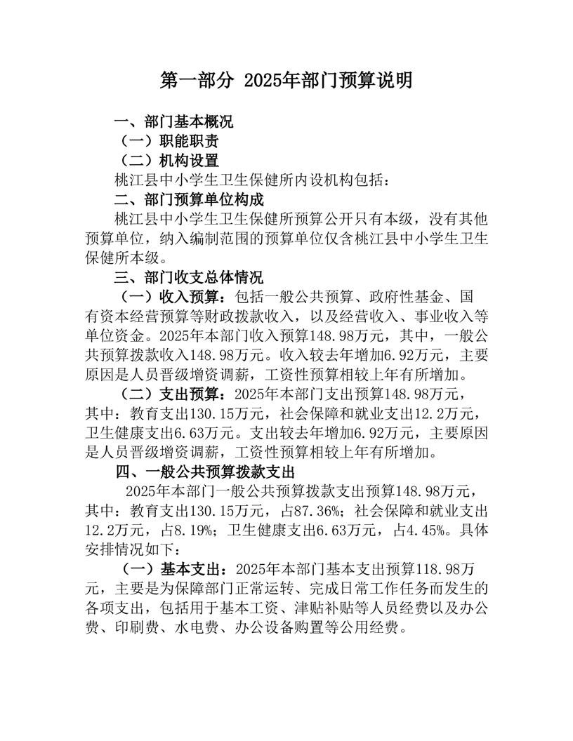 2025年度桃江县中小学生卫生保健所部门预算公开