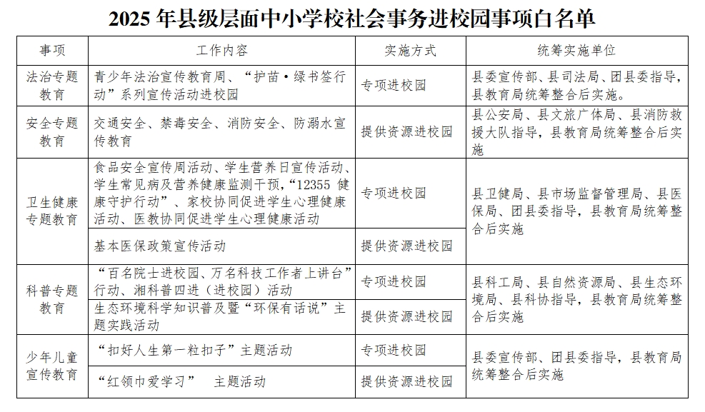 附件:1.2025年县级层面中小学校社会事务进校园事项白名单