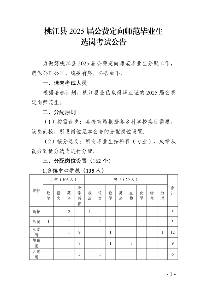 桃江县2025届公费定向师范毕业生选岗考试公告