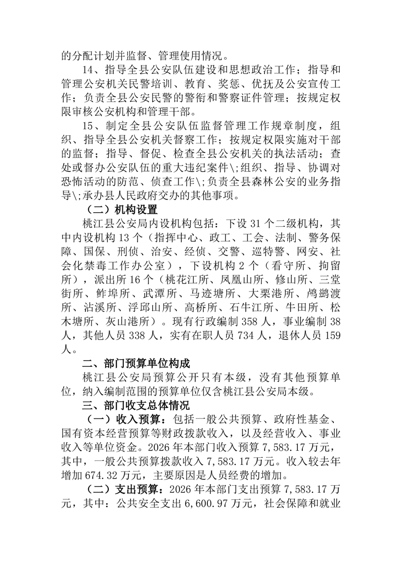 2026年桃江县公安局预算公开说明