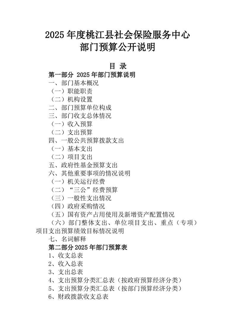 2025年桃江县社会保险服务中心部门预算公开说明