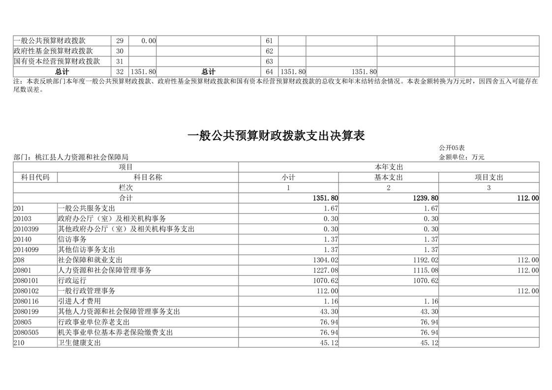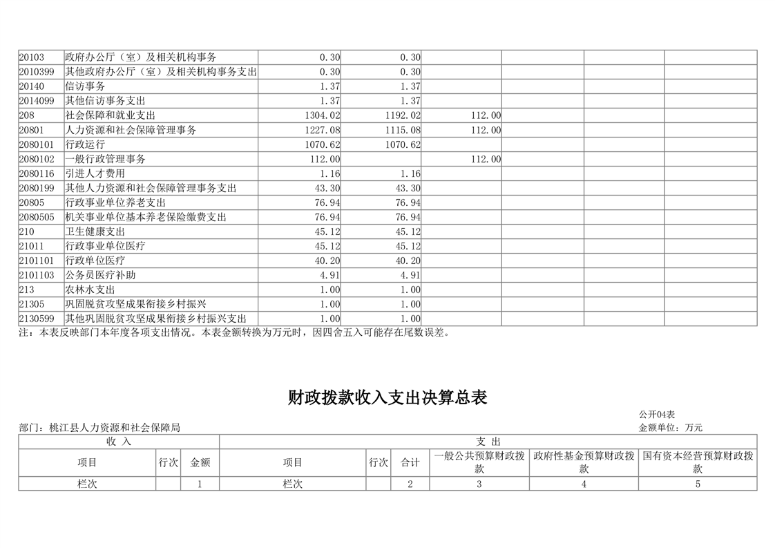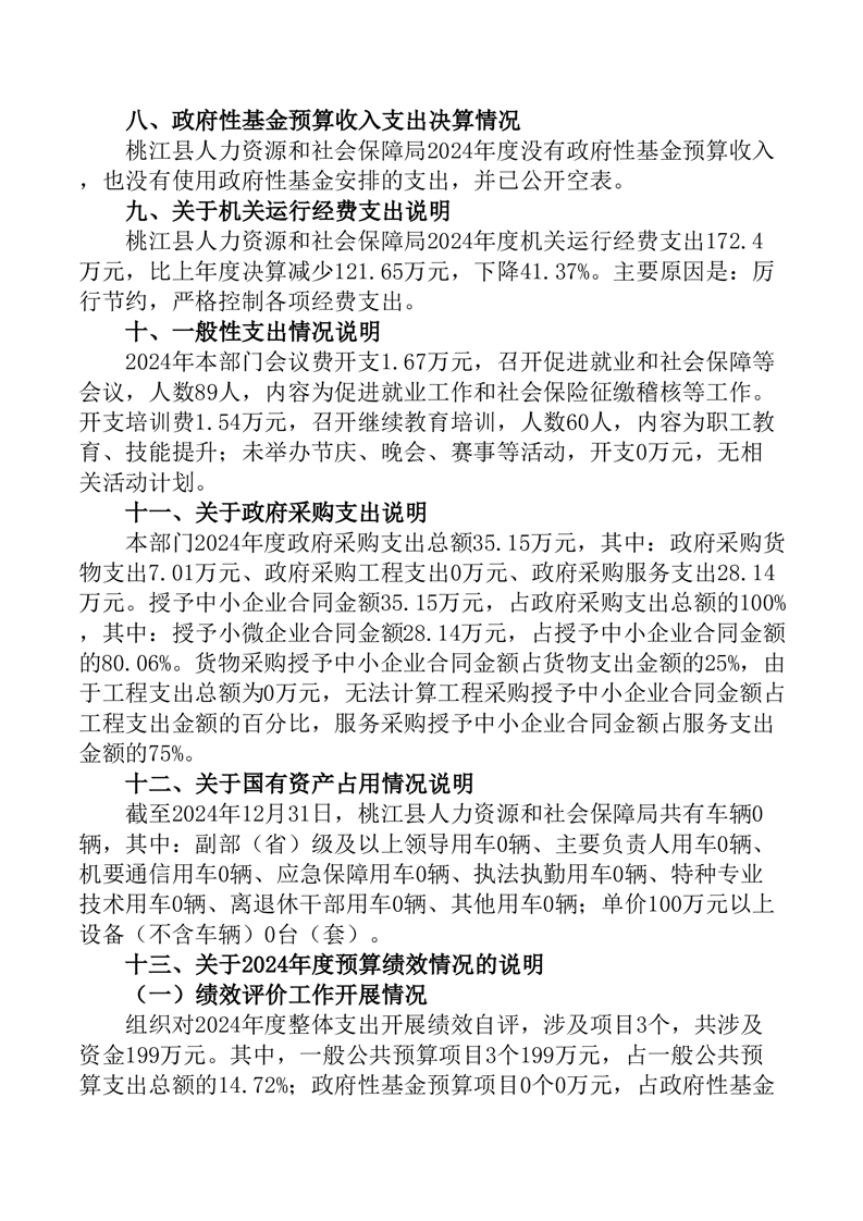 桃江县人力资源和社会保障局2024年部门决算公开说明
