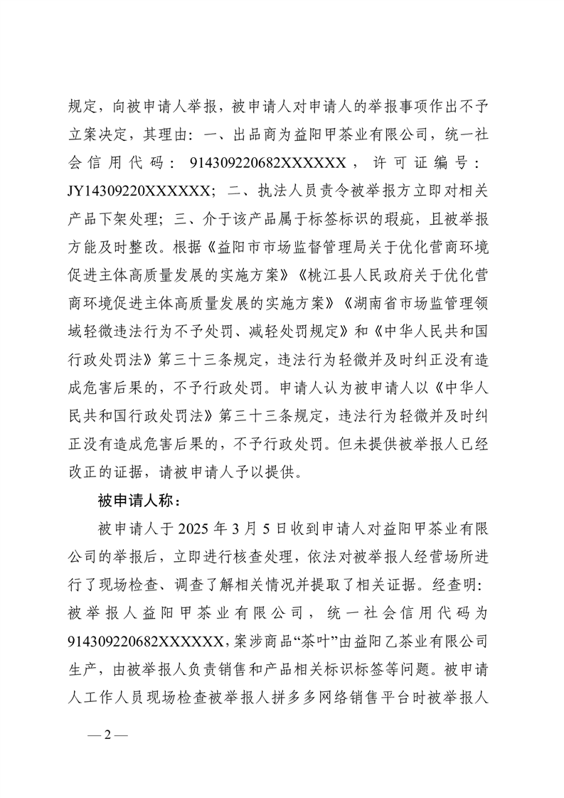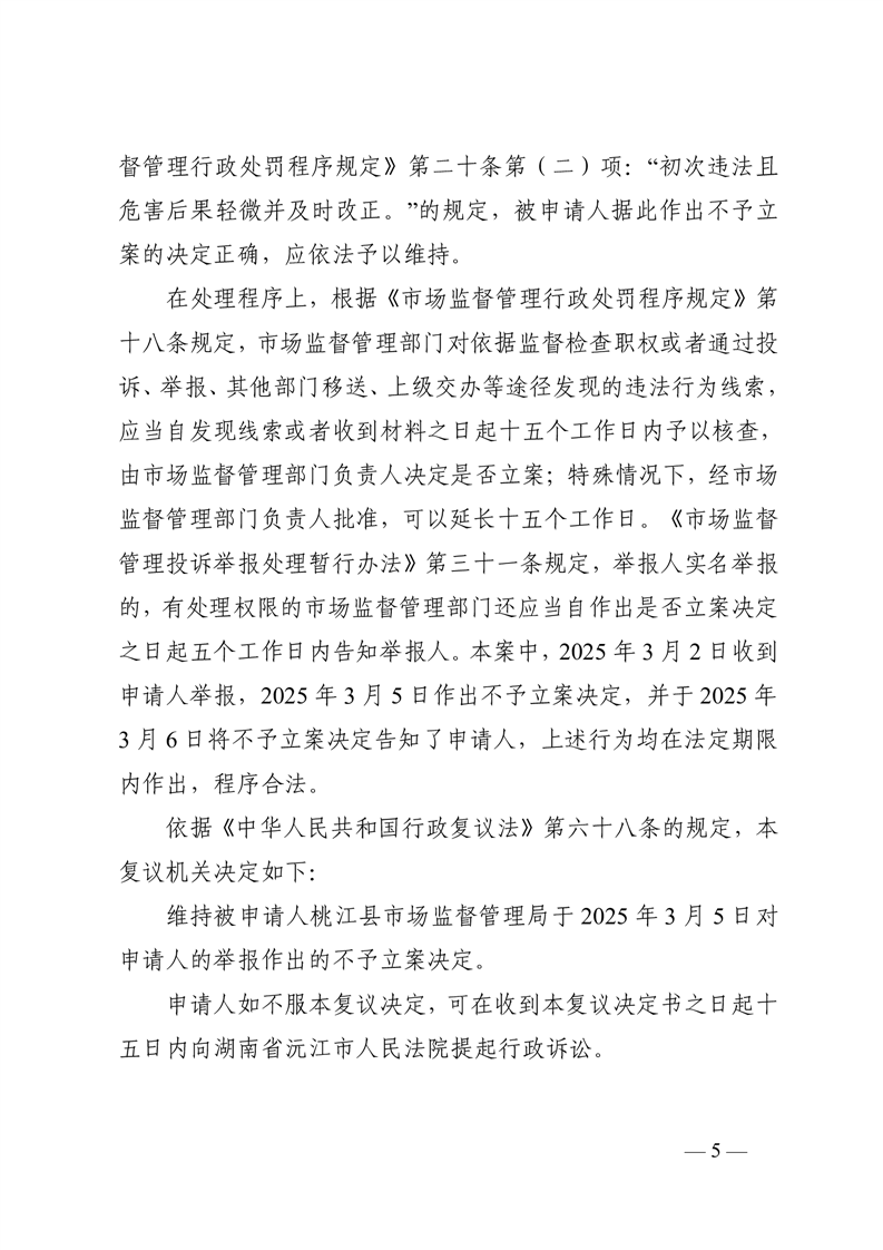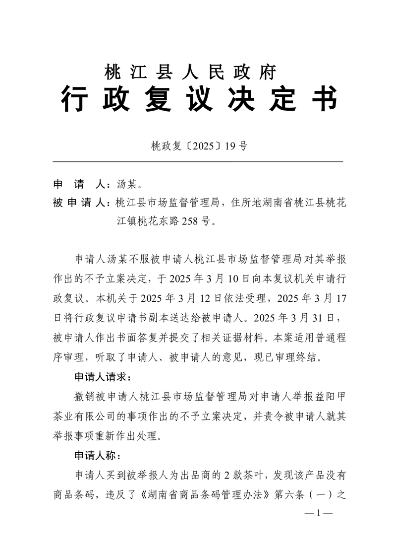 行 政 复 议 决 定 书桃政复〔2025〕19号