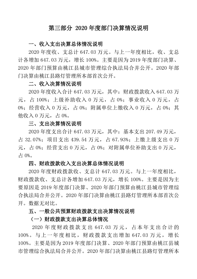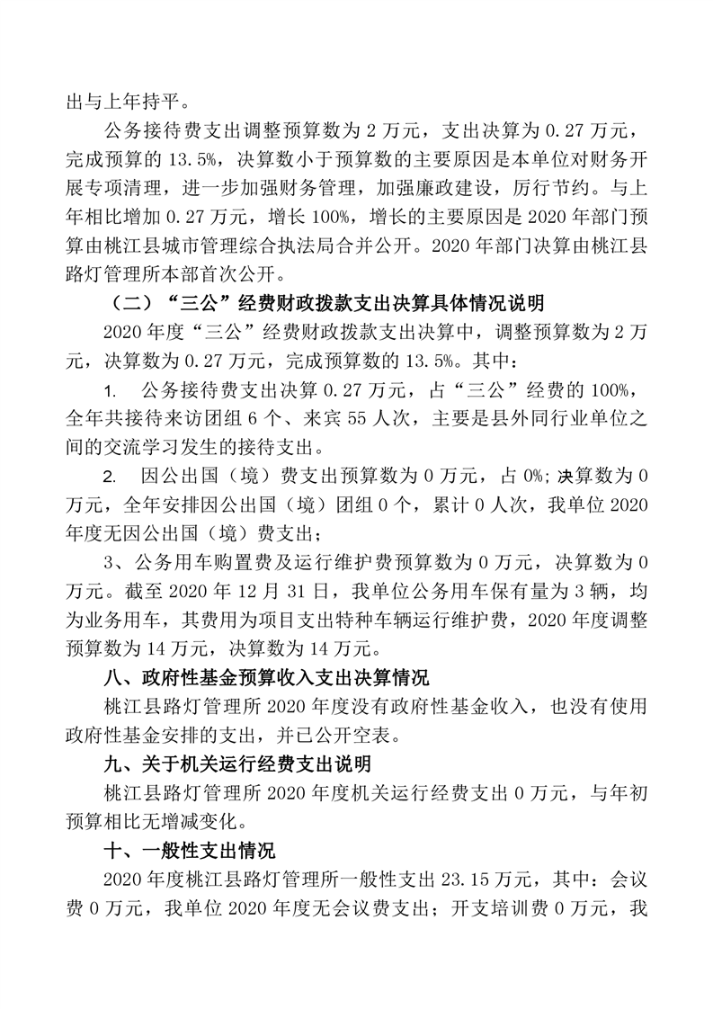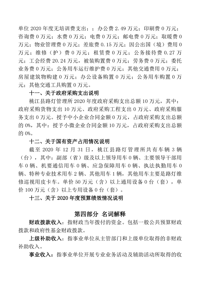 路灯所2020年度部门决算公开说明