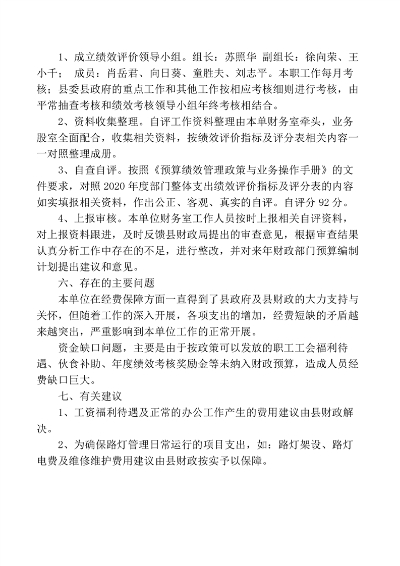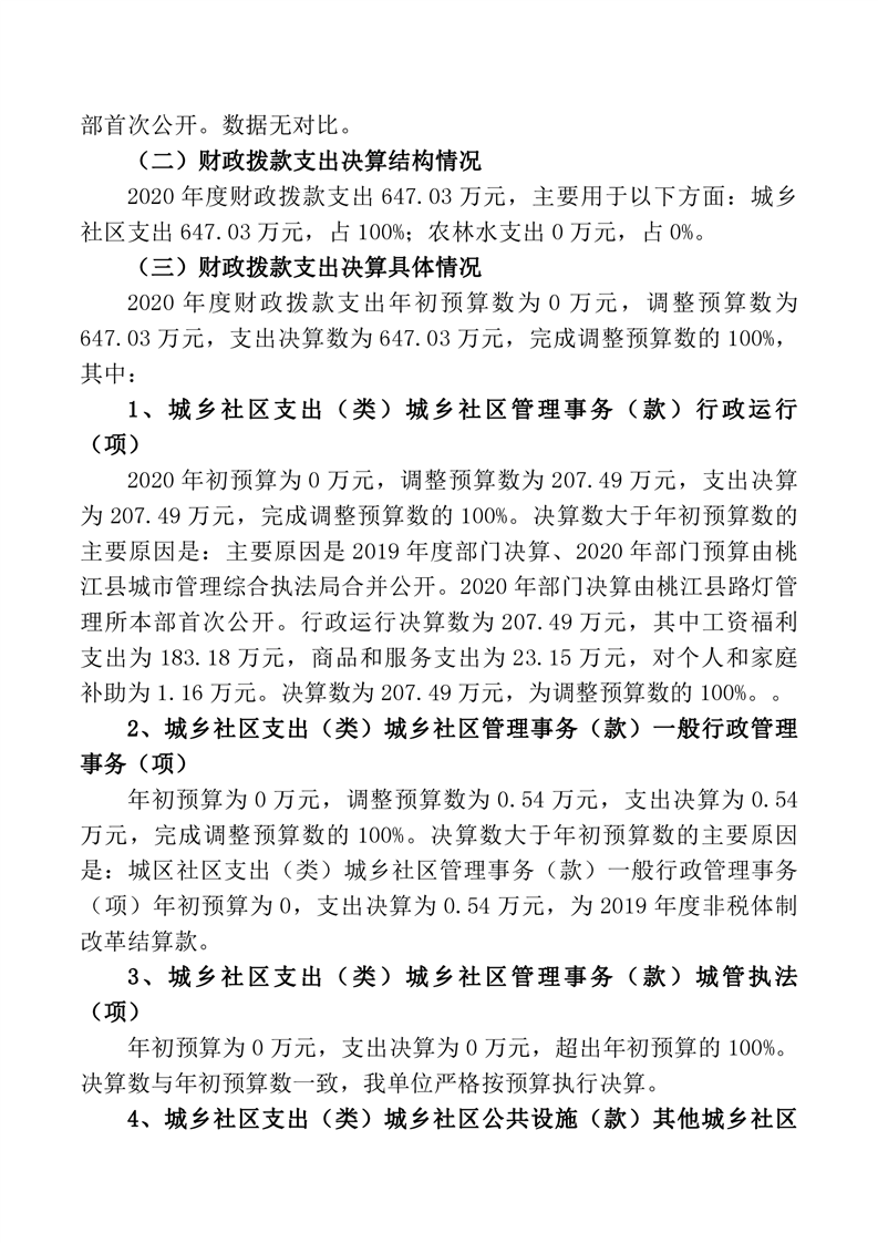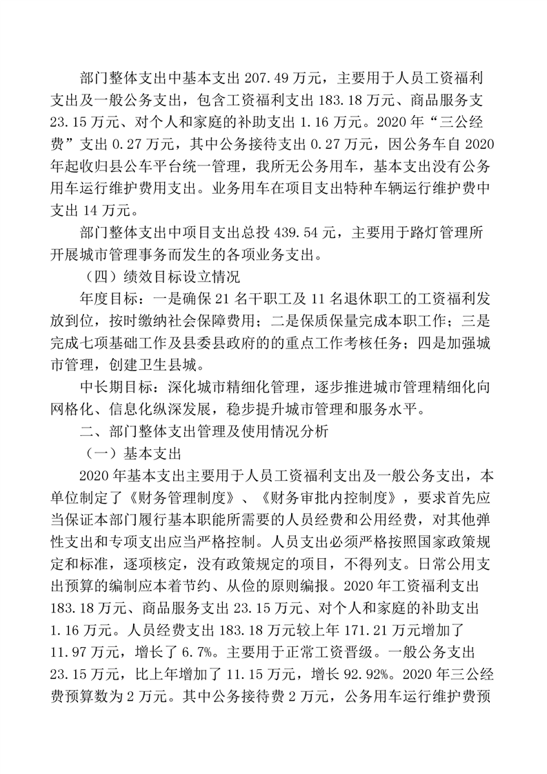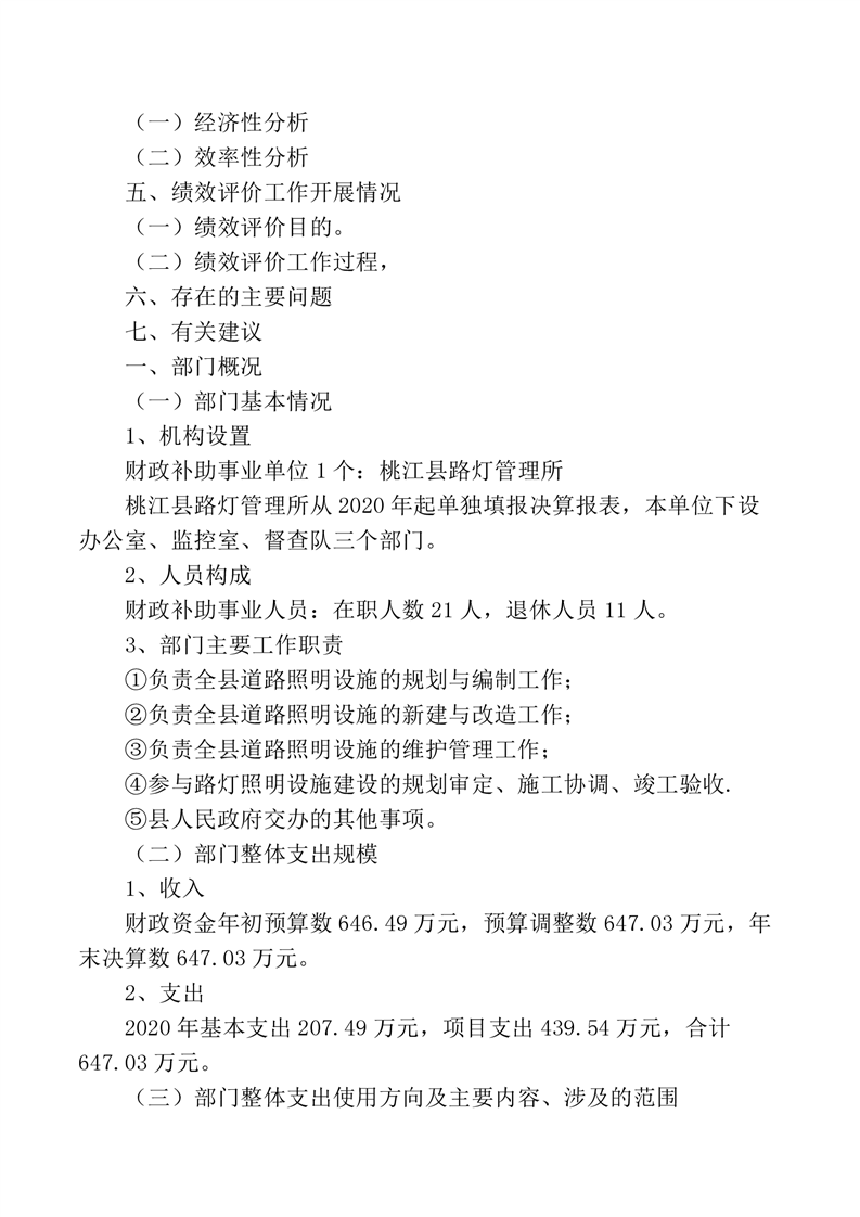 路灯所2020年度部门决算公开说明