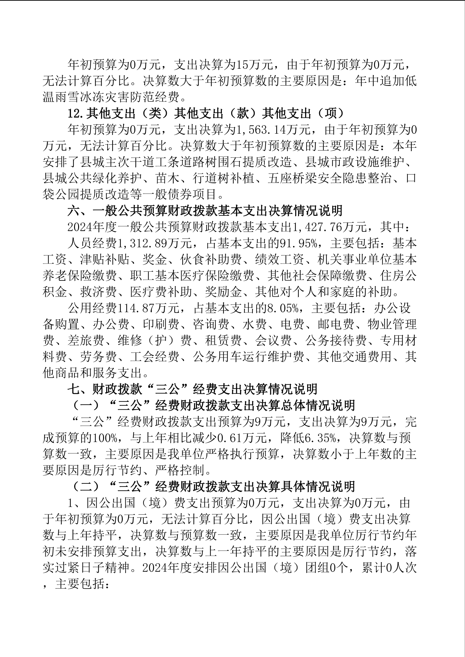 桃江县城市管理和综合执法局2024年部门决算公开说明