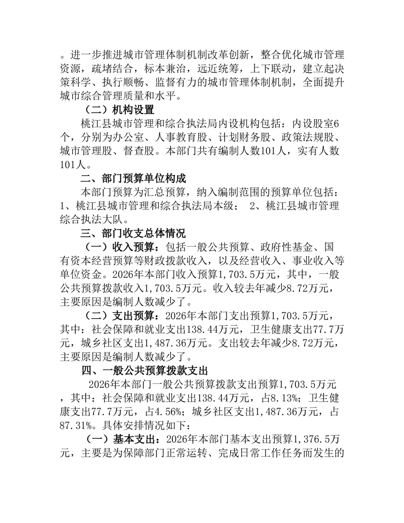 桃江县城市管理和综合执法局2026年部门预算公开说明
