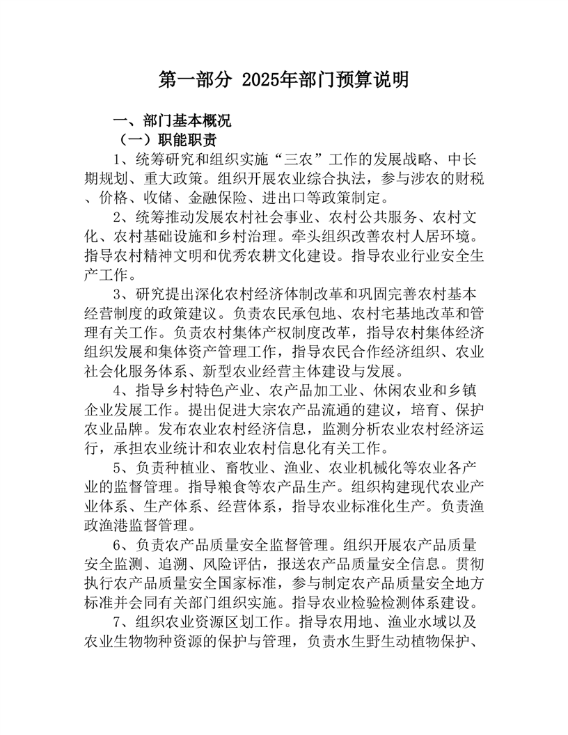 2025年度桃江县农业农村局部门预算公开说明