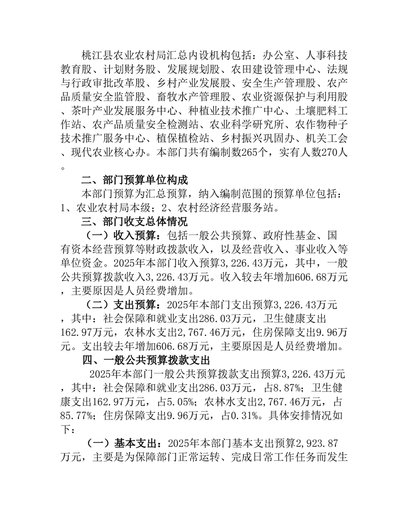 2025年度桃江县农业农村局汇总部门预算公开说明