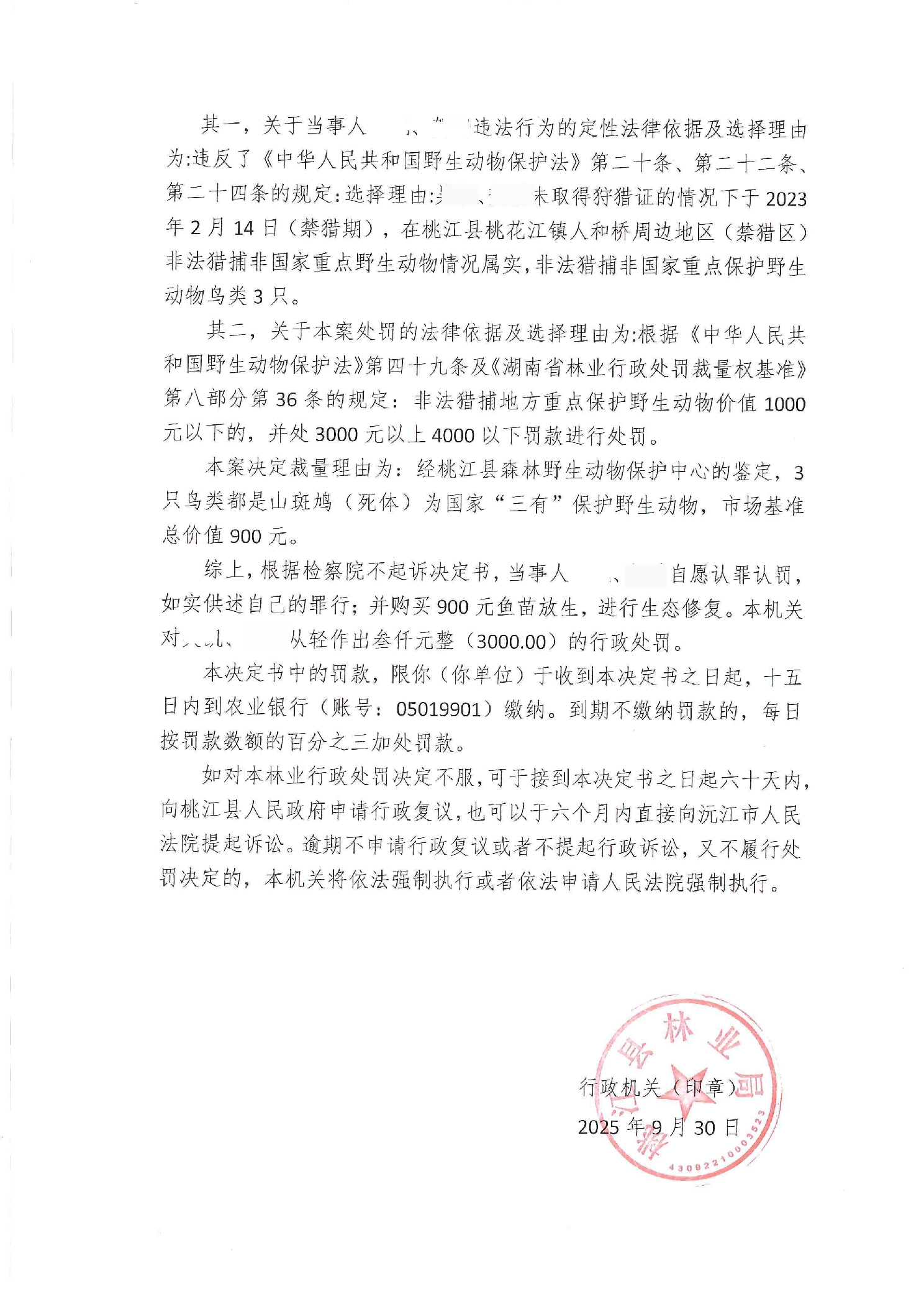 吴某某非法猎捕非国家重点保护野生动物的林业行政处罚决定书