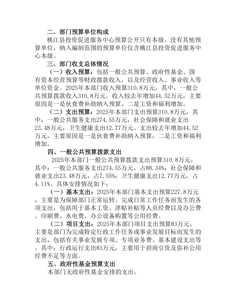 桃江县投资促进服务中心2025年预算公开