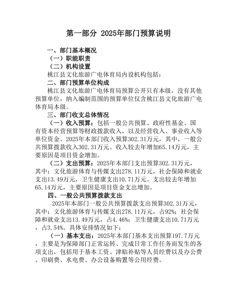 2025年度桃江县文化旅游广电体育局部门预算公开说明