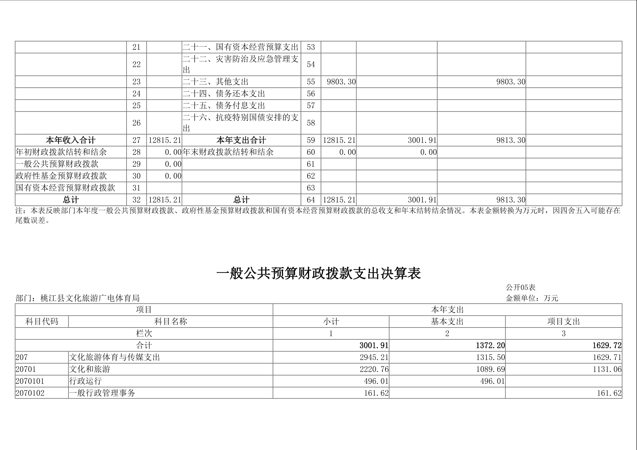 2024年度桃江县文化旅游广电体育局(汇总)部门决算