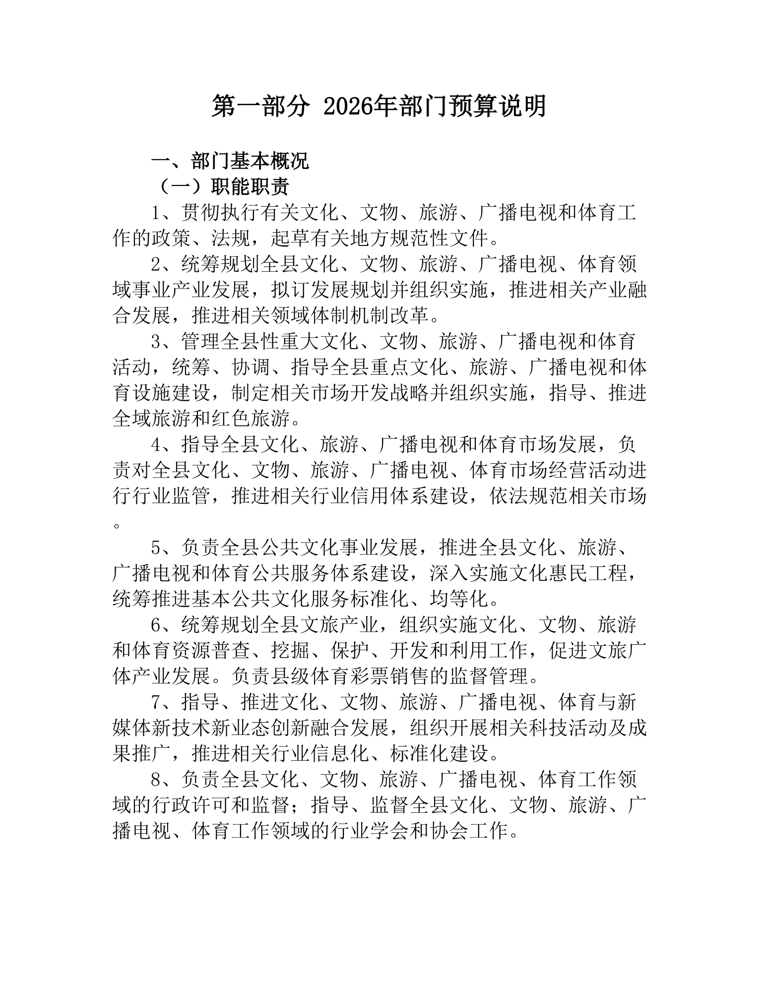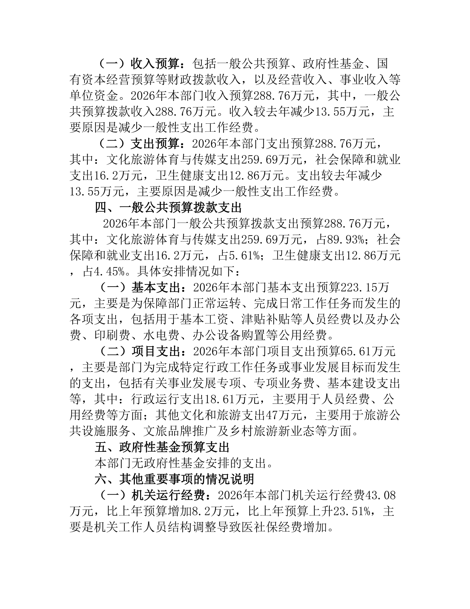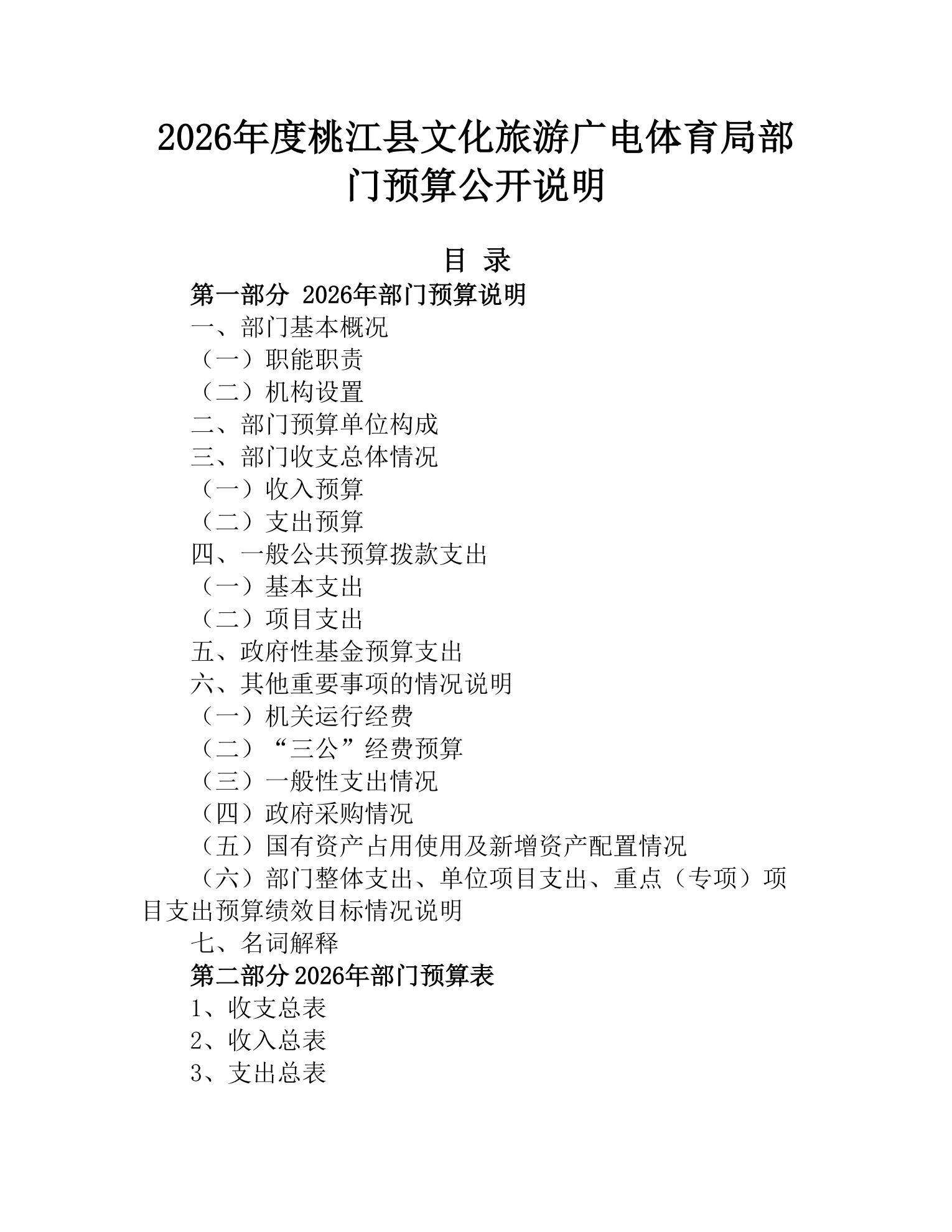 2026年度桃江县文化旅游广电体育局部门预算公开说明