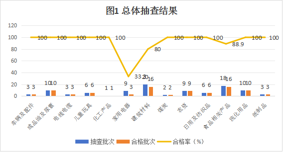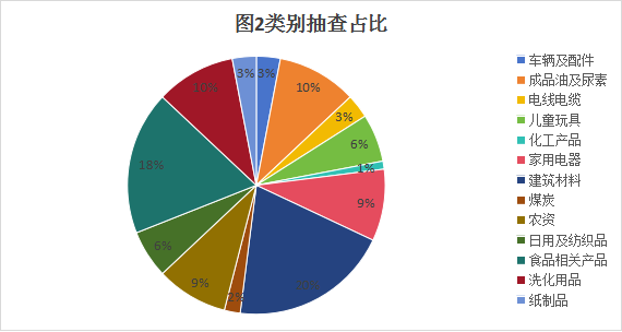 此次商品抽查共涉及车辆及配件3批次,合格3批次,合格率为100%;成品油及尿素10批次,合格10批次,合格率为100%等具体抽查结果见表1和图1、图2。