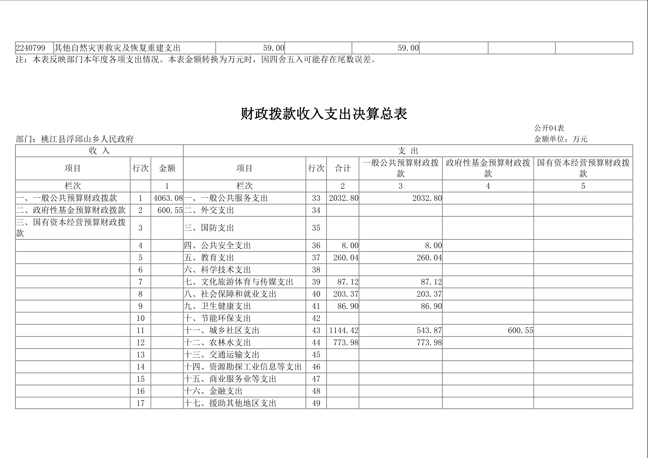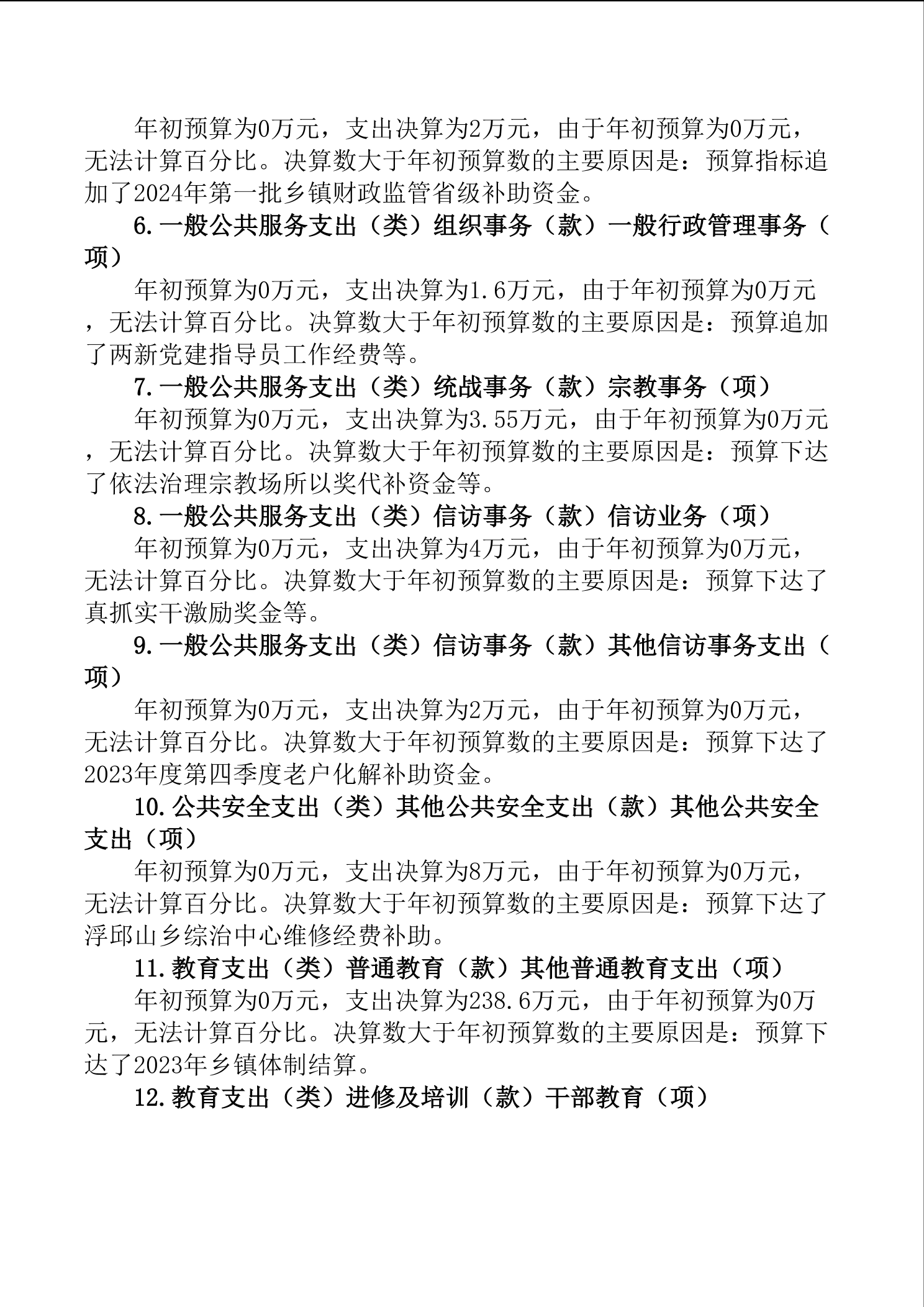 2024年浮邱山乡人民政府部门决算公开说明