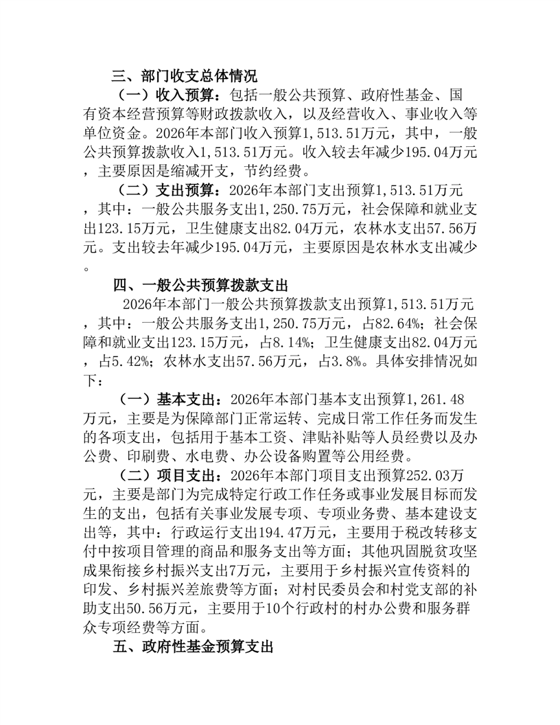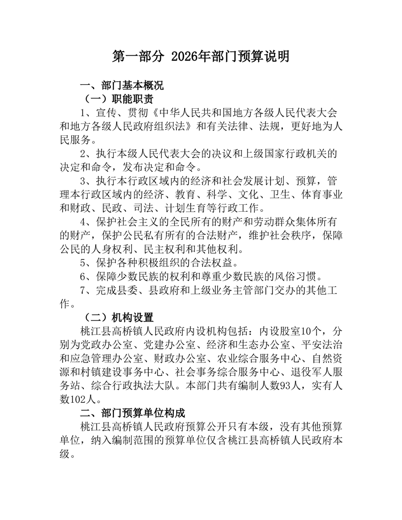 桃江县高桥镇人民政府2026年部门预算公开说明