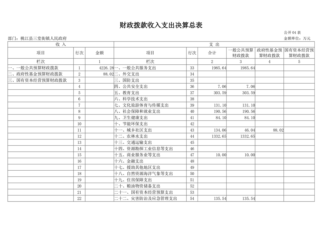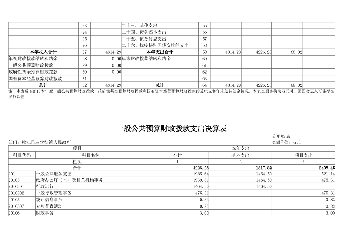 桃江县三堂街镇人民政府2024年部门决算公开说明