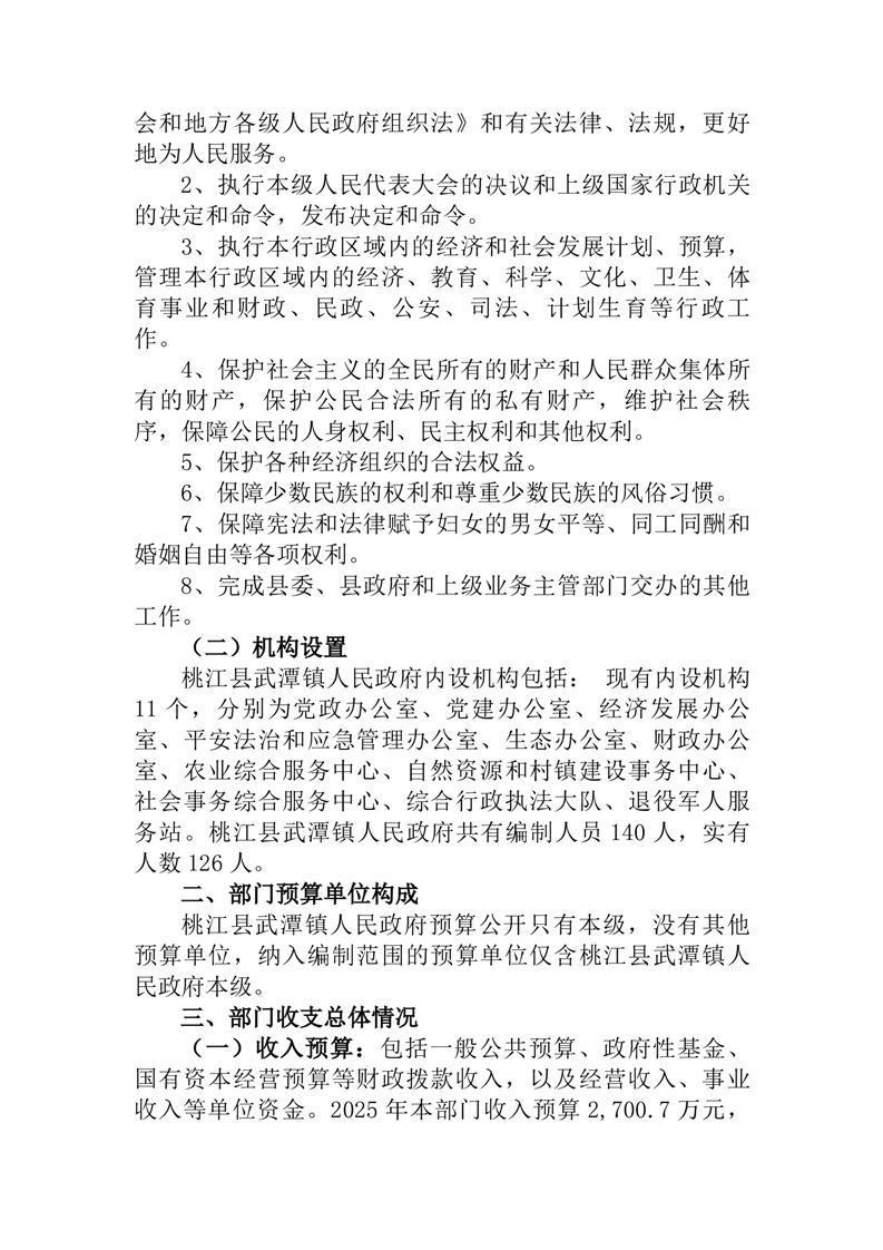 2025年度桃江县武潭镇人民政府部门预算公开说明