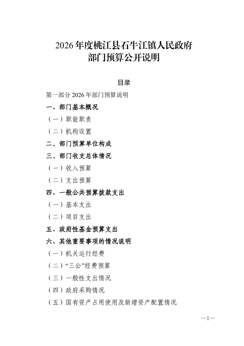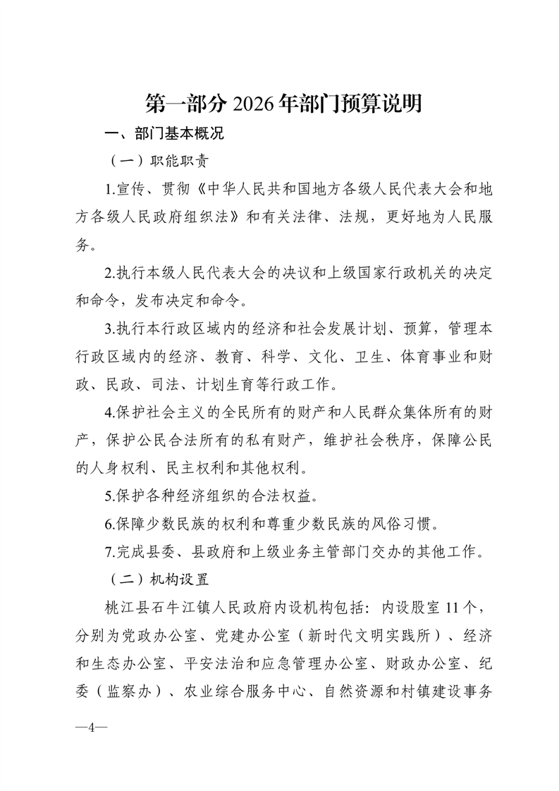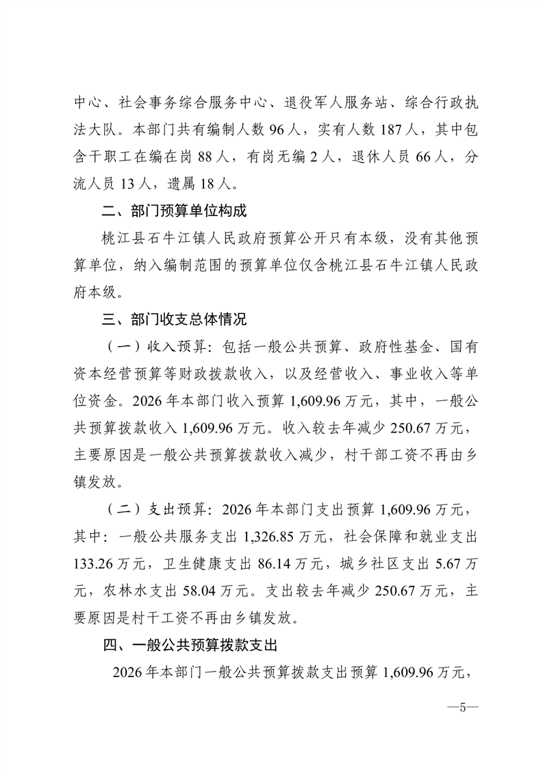 2026年度桃江县石牛江镇人民政府部门预算公开说明