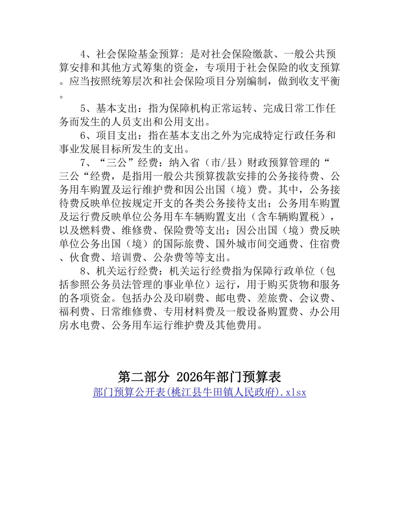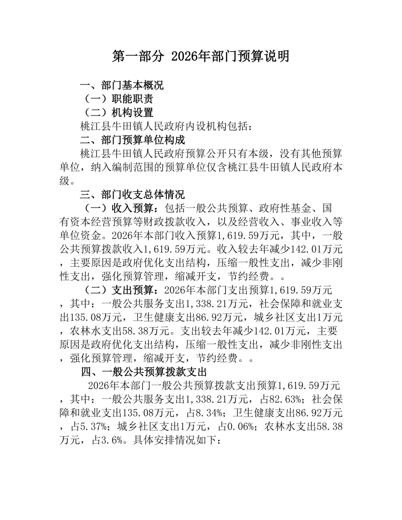 2026年度桃江县牛田镇人民政府部门预算公开说明