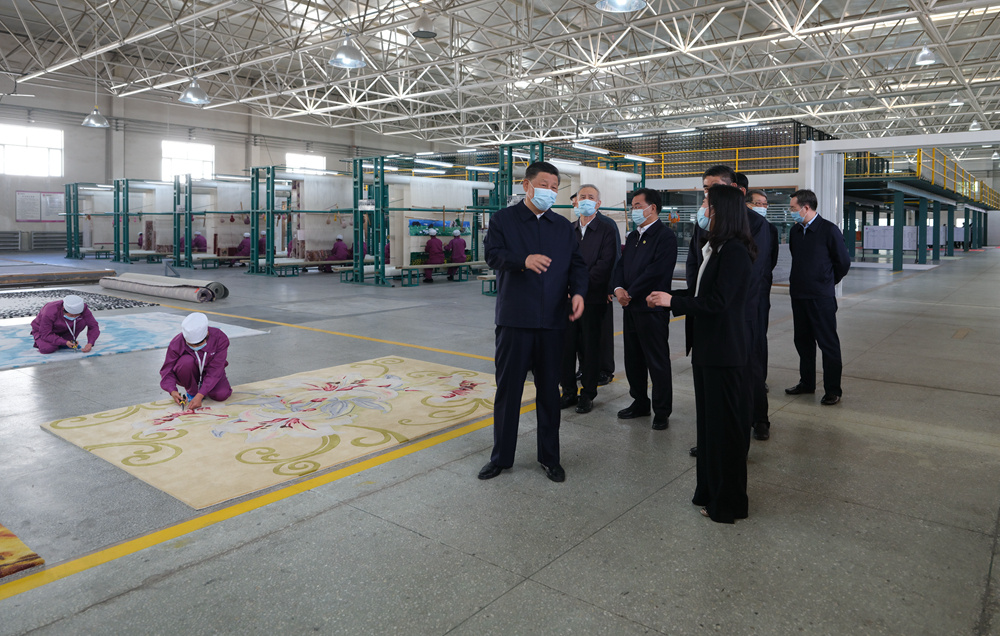 7日下午,习近平总书记来到青海圣源地毯集团有限公司,走进生产车间、设计部门察看产品生产、设计情况。习近平表示,藏毯是一种特色产业,你们很好把传统工艺和现代工艺结合在一起,契合了个性化、多样化的市场需求。藏毯产业是符合青海实际的产业,有扶贫致富、推进乡村振兴的作用,还有促进民族团结的作用。习近平希望青海发展更多这样的特色产业,靠创新实现更好发展。