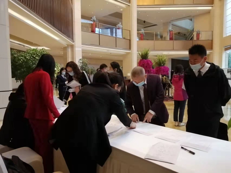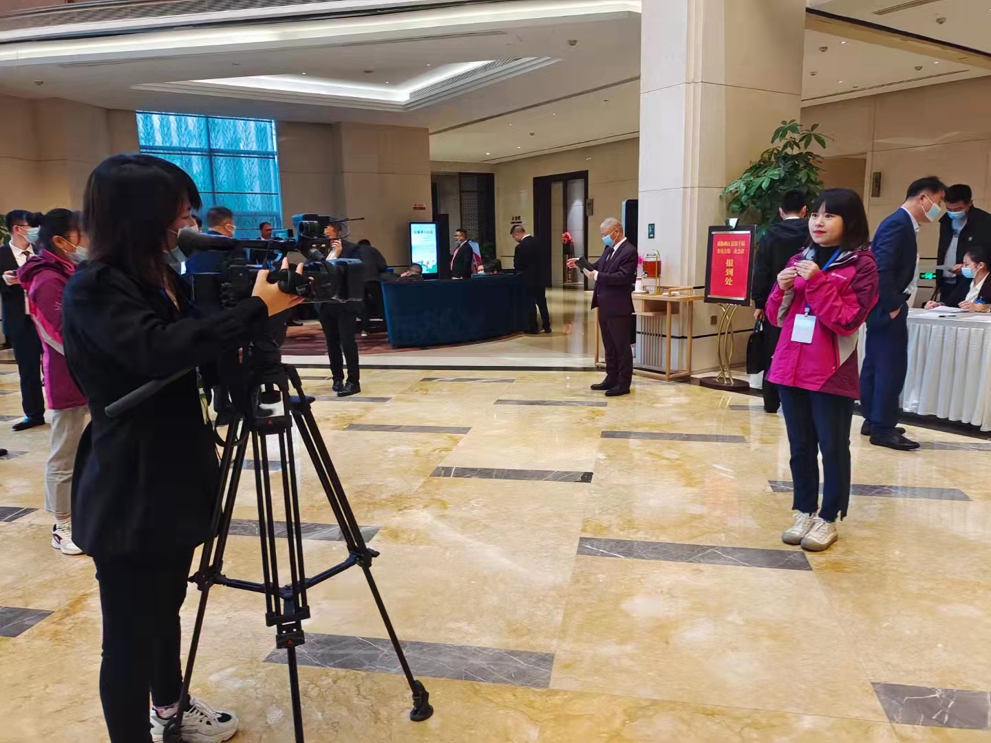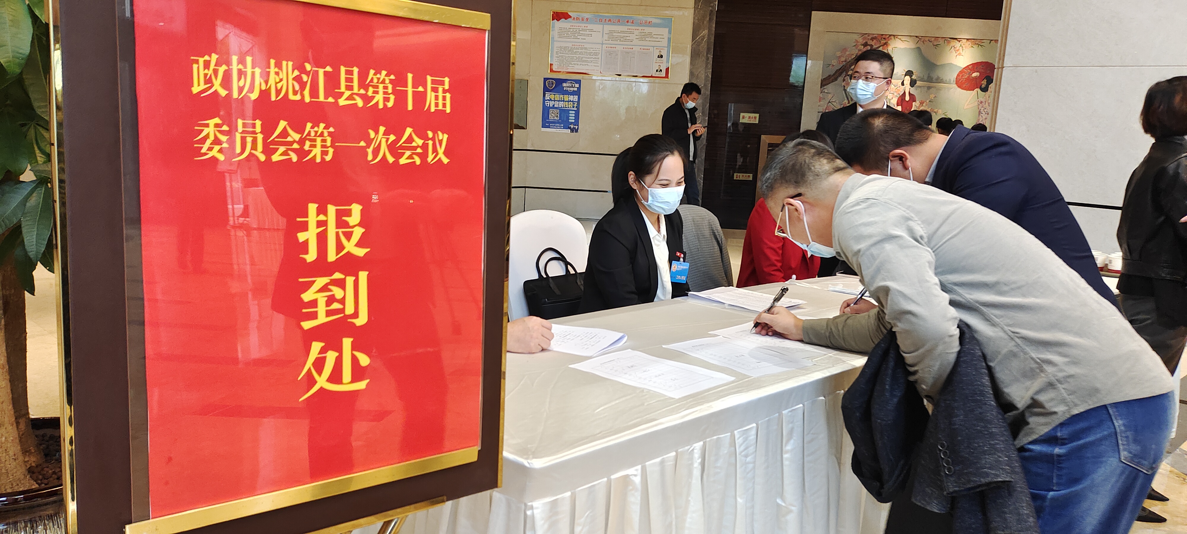 政协委员们向大会组委会报到