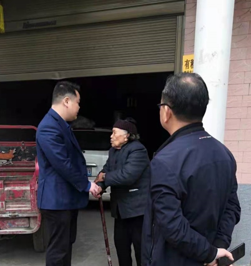 图为退役军人事务局党组书记、局长张云飞慰问高桥镇烈属张银香