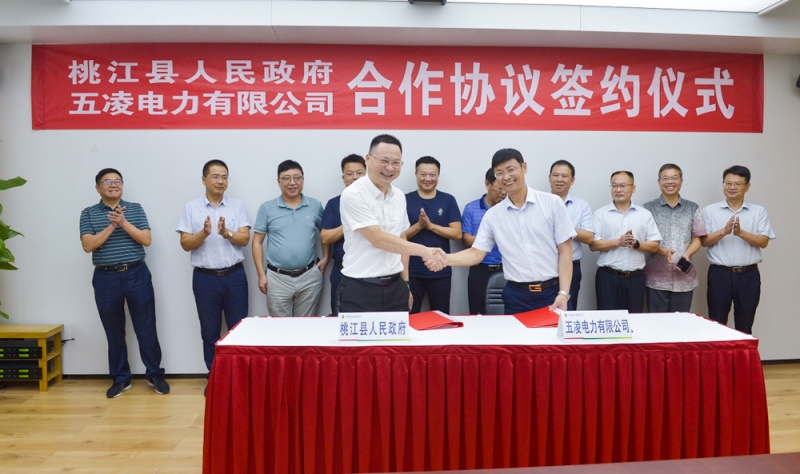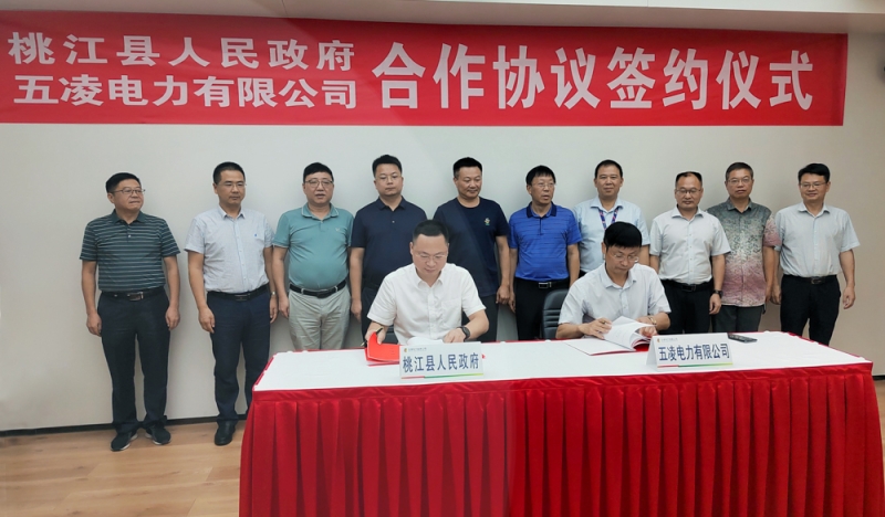 下午5点08分,在省城长沙,县委副书记、代理县长周登高与五凌电力有限公司签订了桃江县松木塘风电场二期开发项目合作协议书,副县长刘小阳,县领导曾国栋,县财政局、县商务局、县水务局、县投资促进服务中心相关部门负责人一同参加。