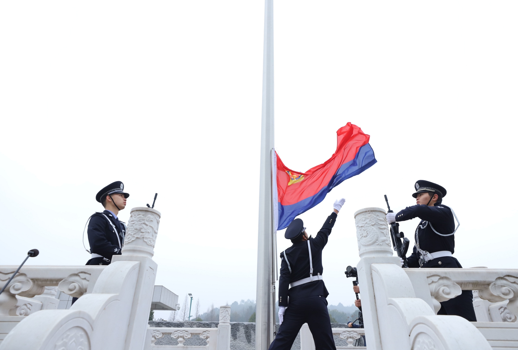 上午10点,伴随着雄壮嘹亮的《人民警察之歌》,警旗冉冉升起,高高飘扬,全体公安民警以饱满的精神和严整的警容向警旗敬礼,表达着对人民警察事业的热爱。
