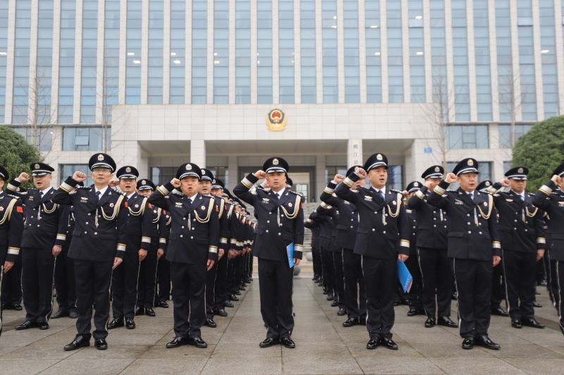 警旗猎猎,誓言铮铮。全体公安民警还面向警旗,右手握拳,庄严宣誓,用铿锵誓言,表达了对党和人民的无限忠诚、对警察职业的无限热爱、对献身崇高公安事业的坚定决心。