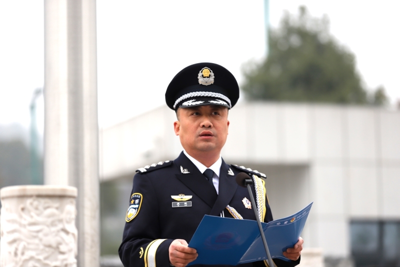 1月10日上午,桃江县公安局举行庆祝人民警察节升警旗仪式暨重温入警誓词活动。副县长、县公安局局长吴斌讲话。