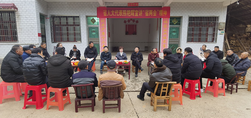 上午8点半,熊艳辉来到离县城40多公里的马迹塘镇三里村寒门坳小组王美秋家的屋场里,通过屋场会为近20位镇村干部群众宣讲省两会精神。马迹塘镇被定为湖南省竹业小镇,省两会期间,熊艳辉提交了《关于创建桃江竹产业发展示范区,加快发展全省千亿竹产业的建议》。宣讲过程中,熊艳辉重点介绍了省政府工作报告中加快推进农业农村现代化与着力保障和改善民生两个部分工作;通报了乡亲们托她递交这个的建议。