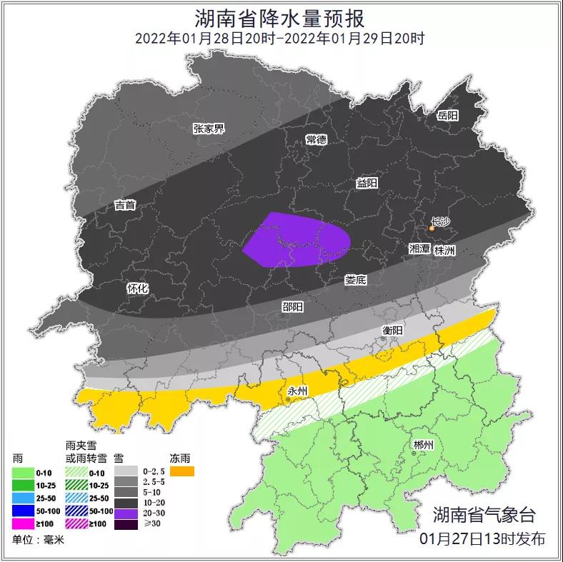 湖南省气象台01月28日06时发布暴雪黄色预警: