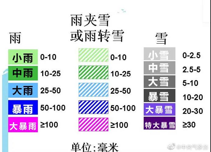 大家看到紫色先别慌,其实是为了更好区分,最近中央气象台刚改了图例色标卡,大暴雪和特大暴雪所属颜色由之前的深灰和黑色,改成了现在紫色系。