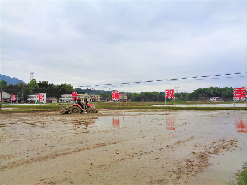 图为2021年马迹塘镇双季稻千亩示范片的春耕现场 摄影 袁静