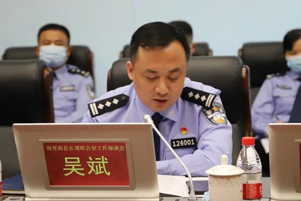 在调研座谈会上,吴斌详细汇报了2021年以来桃江公安工作情况,并就工作中存在的困难、下步打算和请求进行了专题汇报。他表示,过去一年,桃江县公安局深入践行习近平总书记“十六字”总要求,做实主责主业,主动服务大局,夯实基层基础,优化社会管理,坚持政治建警,有力维护了全县政治社会大局持续稳定,先后获评全省禁毒工作先进集体等多项荣誉。下一步将克服困难,着力固根基、扬优势、补短板、强弱项,打造“四个铁一般”的过硬公安队伍,为建设富饶美丽幸福新桃江贡献公安力量。
