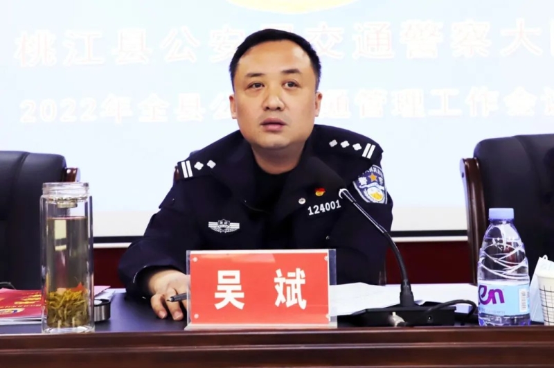 3月18日上午,桃江县2022年公安交通管理工作会议在县公安局交警大队五楼会议室召开。副县长、县公安局局长吴斌出席会议并讲话。