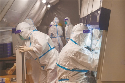工作组的队员们就地转化为“战斗员”,连续奋战,通宵达旦,开展流调溯源、社区管控、核酸检测等重点工作,全力抗击疫情。