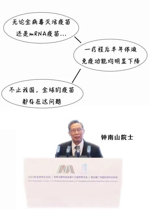 数据显示,无论是18-59岁人群还是60岁及以上人群,在完成第3剂疫苗接种后6个月,体内中和抗体几何平均滴度(GMT)均高于第2剂峰值。在2021年全球市长论坛全体大会上,共和国勋章获得者、中国工程院院士钟南山表示,接种完两针疫苗后,还需要接种加强针。