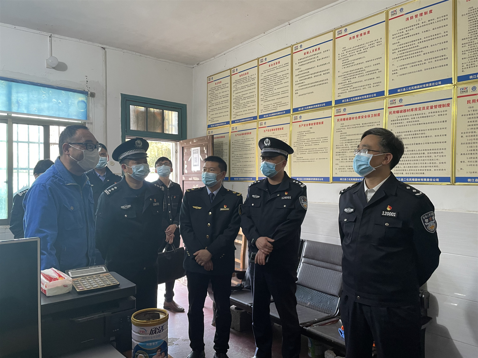 在县二化民爆有限公司仓库,谢振华一行仔细询问了民爆仓库的外围安全距离要求、内部安全布局及应急救援措施、仓库安全管理及相关防爆设备设施运行等情况。他指出,民爆仓库作为重大危险源,要进一步增强做好安全生产工作的责任感和紧迫感,坚决杜绝发生民爆物品被盗、丢失等事故发生。