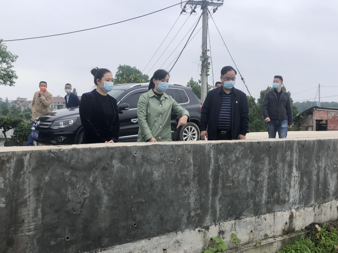 黄丽一行沿着资水石长铁路桥大堤沿岸一路来到鹅公桥电排,听取镇、村及水利部门相关负责人的汇报,实地了解堤垸防汛责任、汛前检查、物资储备等情况,询问存在的薄弱环节,察看沿岸电排建设进度及运行情况。