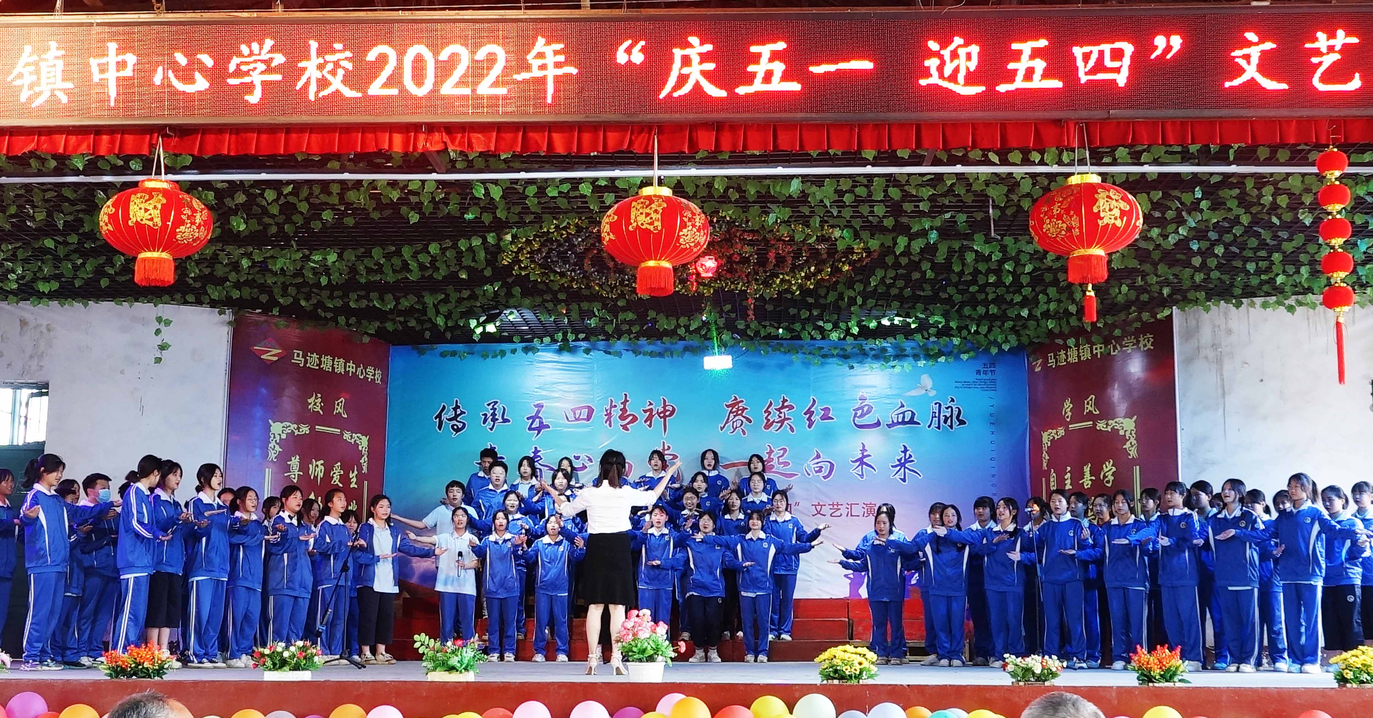 马迹塘镇中心学校(本部)举办“传承五四精神,赓续红色血脉”“庆五一 迎五四”文艺汇演主题活动。全校千余名师生共同参与,精心排练了声乐类、器乐类、舞蹈类、表演类等25个节目。