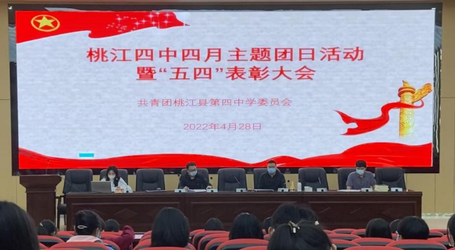 桃江四中开展“五四”青年节表彰大会暨主题团日活动。会上表彰奖励了荣获“五四”奖章的先进集体以及个人代表。并组织与会青年学习主题团课——《学好百年团史 凝聚奋进力量》。