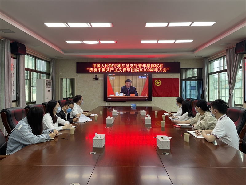 上午十点,在中国人民银行桃江县支行会议室,该行全体青年集中收看庆祝大会实况,认真学习习近平总书记在庆祝大会上的重要讲话。大家表示,一百年来,在党的坚强领导下,共青团不忘初心、牢记使命,走在青年前列,组织引导一代又一代青年坚定信念、紧跟党走,为争取民族独立、人民解放和实现国家富强、人民幸福而贡献力量,谱写了中华民族伟大复兴进程中激昂的青春乐章。