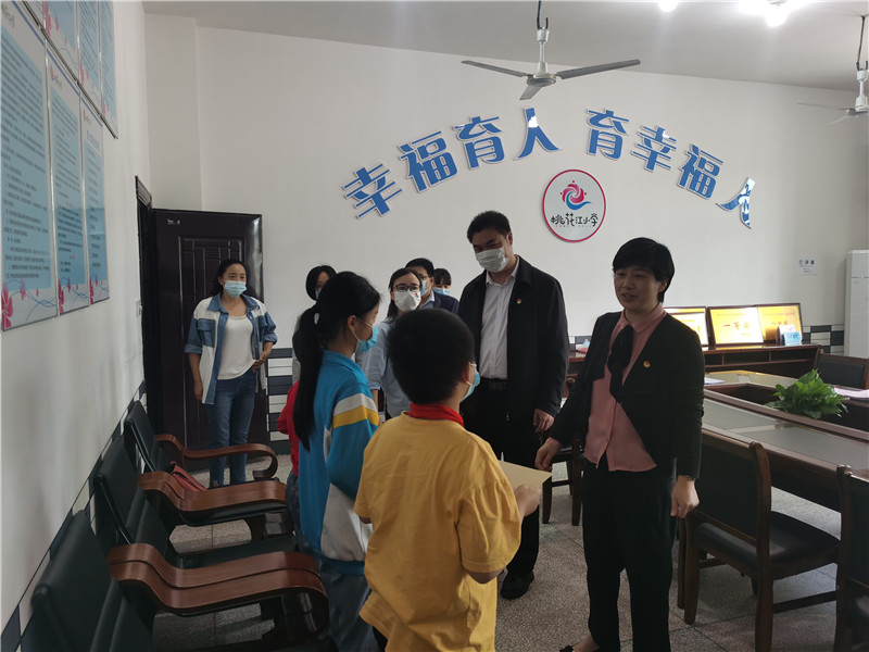 邓资益一行先抵达挂点单位桃花江小学调研,听取了该校工作汇报,并观摩了少先队宣传阵地。邓资益对该校“幸福育人,育幸福人”的教育理念表示认同,对学校主动与农村学校、新疆学校结对帮扶,交流教育经验、共享教育资源的做法表示赞赏,并勉励学校进一步将德育与少先队工作有机结合,不断丰富工作载体,充分发挥少先队实践育人的作用。