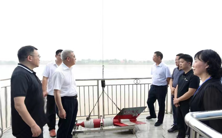 欧阳艳在县水文站实地察看城关垸水位、流量实时监测和水情预警等情况