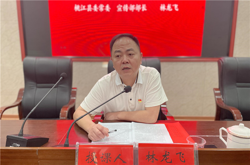 6月6日上午,县委常委、宣传部部长林龙飞以《做实做细宣传思想工作“十五字”方针——从“十四五”文化发展规划看如何做好桃江宣传思想文化工作》为题,在县委党校为2022年科级干部学习习近平新时代中国特色社会主义思想暨乡村振兴专题研修班的学员授课。