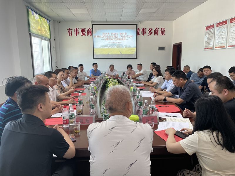 6月25日上午,株洲市益阳企业家商会何立山一行来到沾溪镇九螺坊村开展万企兴万村活动,并参加了迎老乡、回故乡、建家乡交流座谈会。县政协党组书记、主席杨凯波主持会议,县政协副主席蒋胜丰、董佳,秘书长左交等出席会议。